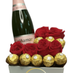 Box Corazón de 9 Rosas de Jabón y 7 Bombones Ferrero Rocher