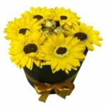 Ramo de 3 Girasoles, Bombones Amor y Globo