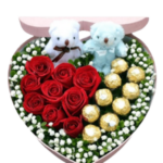 Box Corazón de 9 Rosas de Jabón y 7 Bombones Ferrero Rocher