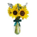 Ramo de 3 Girasoles, Bombones Amor y Globo