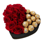 Box Corazón de 9 Rosas de Jabón y 7 Bombones Ferrero Rocher