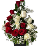 Base Espiral de 15 Rosas Blancas y Rojas