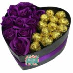 Box Corazón de Rosas Eternas Moradas mitad 12 Bombones Valente