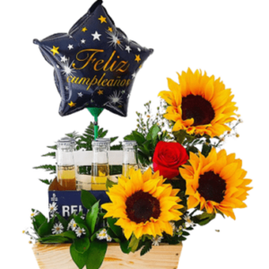 Ramo de 2 Tulipanes 1 Girasol, Bombones Amor y Globo