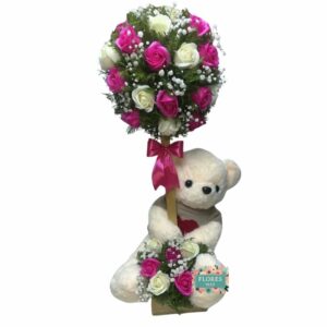 Rosas Eternas Primaverales, Bombones y Peluche Oso 30cm