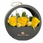 Arreglo Metálico de 3 Rosas Amarillas y 2 Bombones
