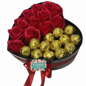 Base con Rosas Eternas, Peluche, Bombones y Globos