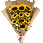 Ramo Alargado de 10 Girasoles en Papel Kraft