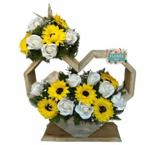 Base con Espumante, Bombones, Girasoles y Rosas Eternas Rojas