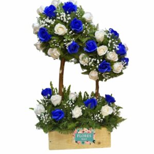 Box Corazón 10 Rosas Azules y 8 Bombones