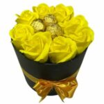 Box Cilindro 8 Rosas Amarillas Eternas de Jabón y 3 Bombones