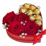 Base de 10 Rosas Eternas Azules, 6 Bombones y Peluche Stitch