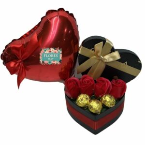 Box Corazón 12 Rosas, Botella y 4 Bombones