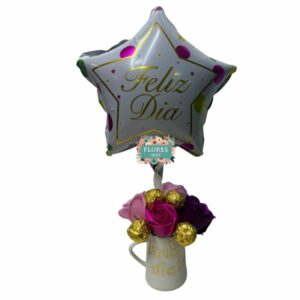 Arreglo de Cumpleaños con Rosas Eternas, Peluche y Globos
