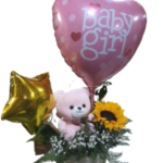 Base de 1 Girasol, Peluche de 20cm y Globos