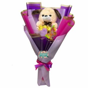 Base de 15 Rosas y Peluche de 30cm