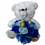 Rosas Eternas Azules, Bombones y Peluche Oso 30cm