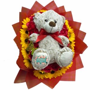 Ramo especial de 4 Rosas Rojas y 1 Girasol