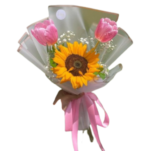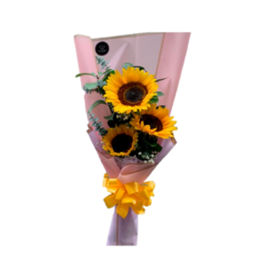 Arreglo de 3 Rosas Rosadas y 1 Girasol