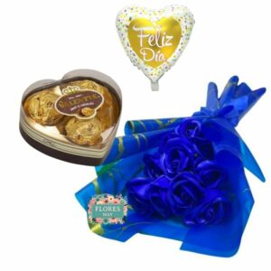 Pecera de 4 Rosas Azules Eternas y 4 Bombones