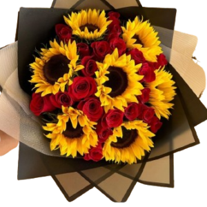 Box Cilindro de 10 Rosas y 5 Girasoles