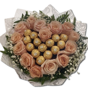 Ramo de 16 Rosas Blancas y 36 Bombones
