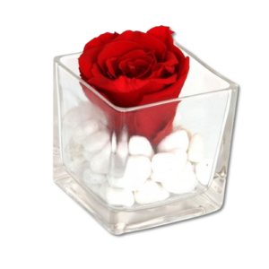 Box cuadrado 6 Rosas Blanco Rojo y 8 Bombones