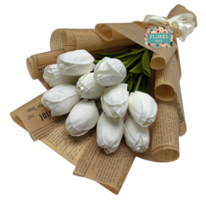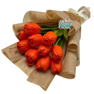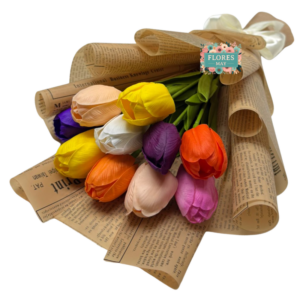 Bouquet de 7 Tulipanes, Peluche con Polerón 30cm y Globo
