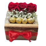 Base de 3 Rosas y 4 Bombones Ferrero Rocher
