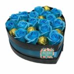 Box Corazón de Rosas 16 Eternas Celeste y 8 Bombones Valente