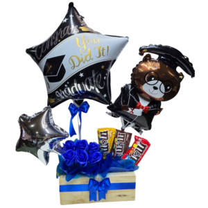 Caja con Vino, Bombones, Copas y Globo