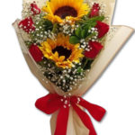 Ramo Alargado de 6 Rosas Rojas, 2 Girasoles con Ilusión