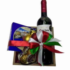 Caja con Espumante Blue, Bombones, Copa y Globo
