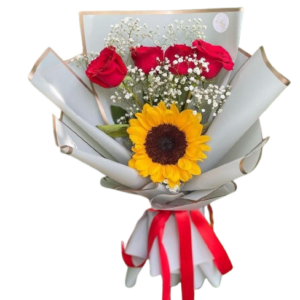 Bouquet de 6 Rosas, Peluche con Polerón de 30cm y Globo