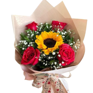 Ramo Alargado de 3 Girasoles, Peluche con Polerón de 30cm y Globo