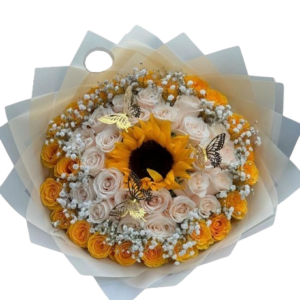 Bouquet de 50 Rosas Azules Eternas y Peluche Stitch en el centro