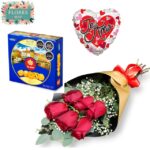 Bouquet de 3 Rosas, Peluche con Polerón y Globo