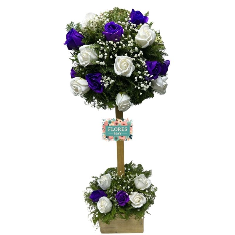 Arbolito de Condolencias Rosas Eternas Blancas y Azul