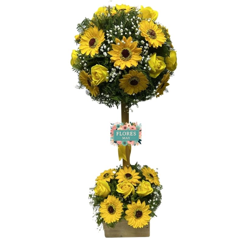 Arbolito de Girasoles y Rosas Eternas Amarillas