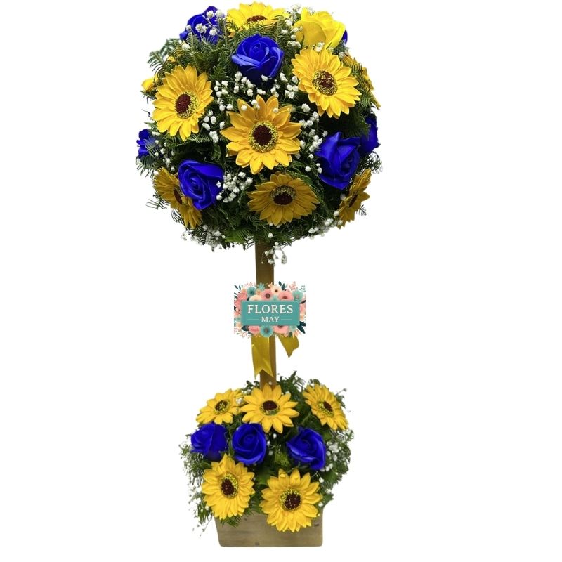 Arbolito de Girasoles y Rosas Eternas Azules