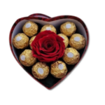 Box Corazón de 11 Bombones y 1 Rosa Roja