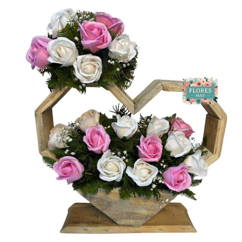 Base Corazón de Rosas Eternas Blancas y Rosadas