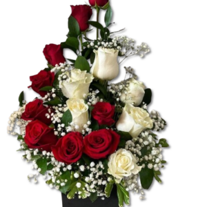 Ramo Alargado de 24 Rosas Blancas y Rojas