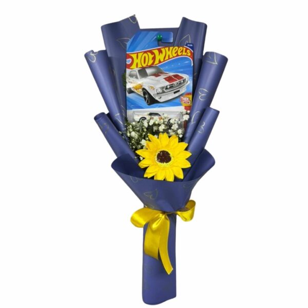 Bouquet de 1 Girasol Eterno y 1 Carrito Hot Wheels