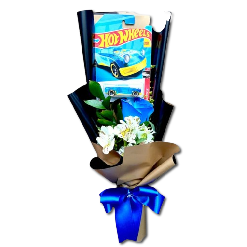 Bouquet de 1 Rosa Azul y 1 Carrito Hot Wheels