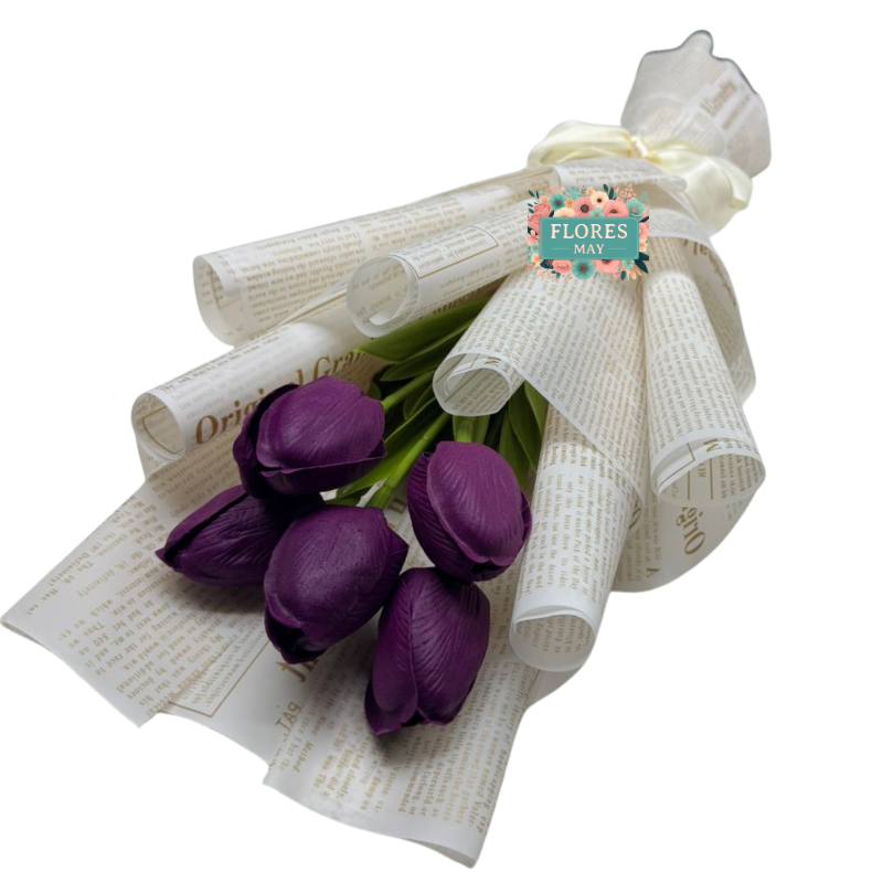 Bouquet de 5 Tulipanes Eternos Morados