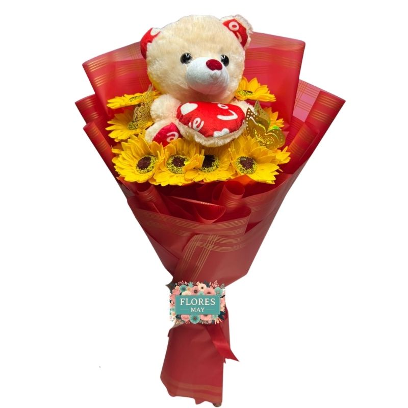 Bouquet de Girasoles Eternos con Peluche Oso 20cm