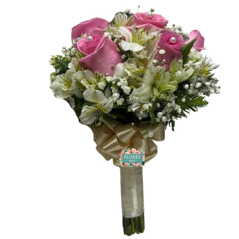 Bouquet de Novia 6 Rosas Rosadas y Astromelias