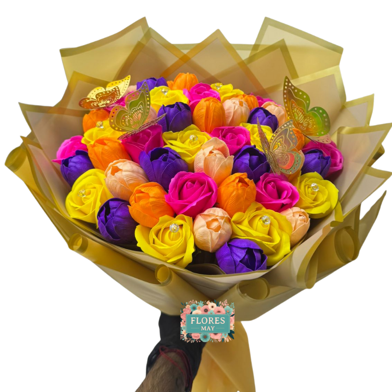 Bouquet de Rosas y Tulipanes Eternos Primaverales