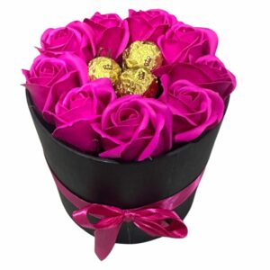 Box Cilindro 8 Rosas Fucsias Eternas de Jabón y 3 Bombones